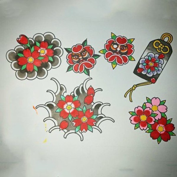 日式小图手稿:25张传统风格的彩色小日式纹身手稿图案