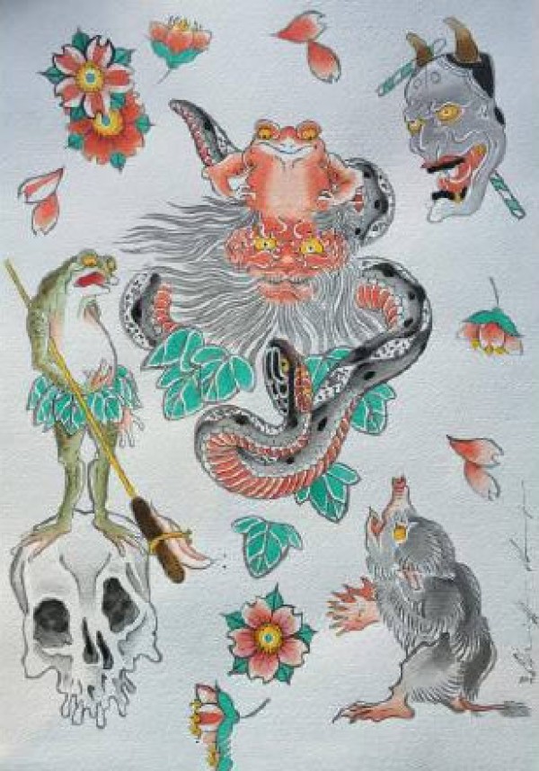 日式小图手稿:25张传统风格的彩色小日式纹身手稿图案
