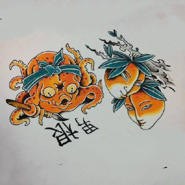 日式小图手稿:25张传统风格的彩色小日式纹身手稿图案
