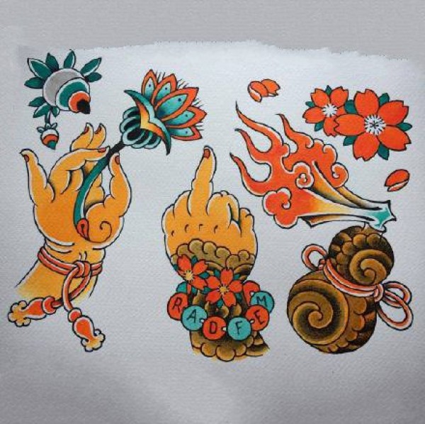 日式小图手稿:25张传统风格的彩色小日式纹身手稿图案