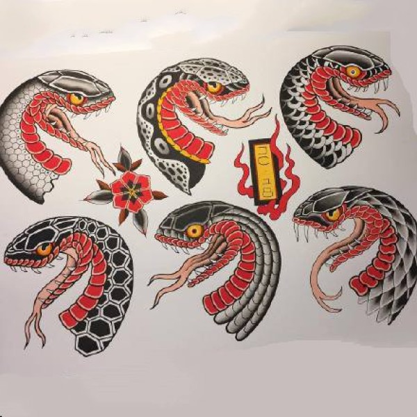 日式小图手稿:25张传统风格的彩色小日式纹身手稿图案