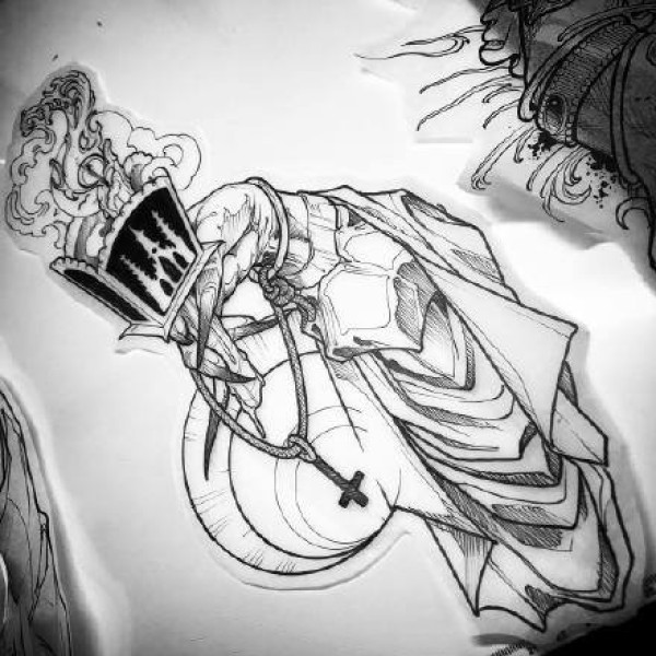 一组满背大气九龙拉棺纹身图案作品和手稿