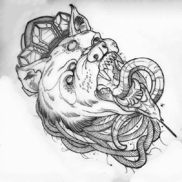 半甲唐狮手稿 传统的9款唐狮主题半甲纹身手稿图片