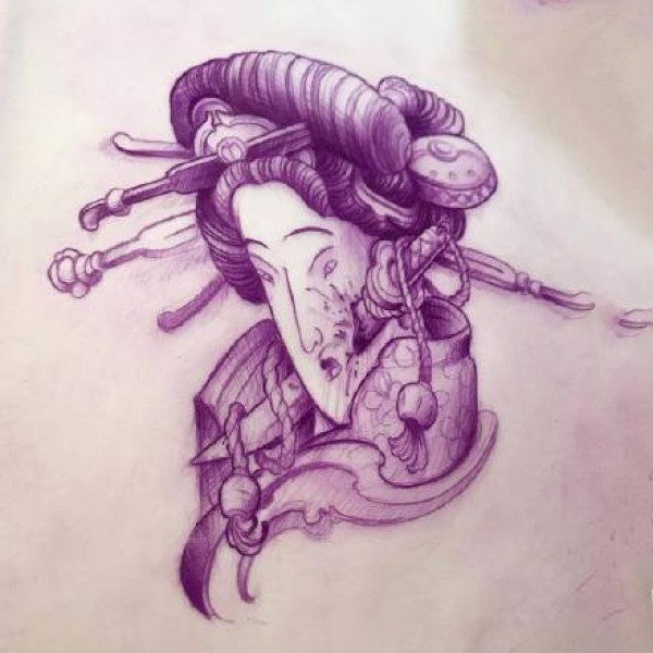鬼武士般若等紫色的传统纹身手稿图案8张