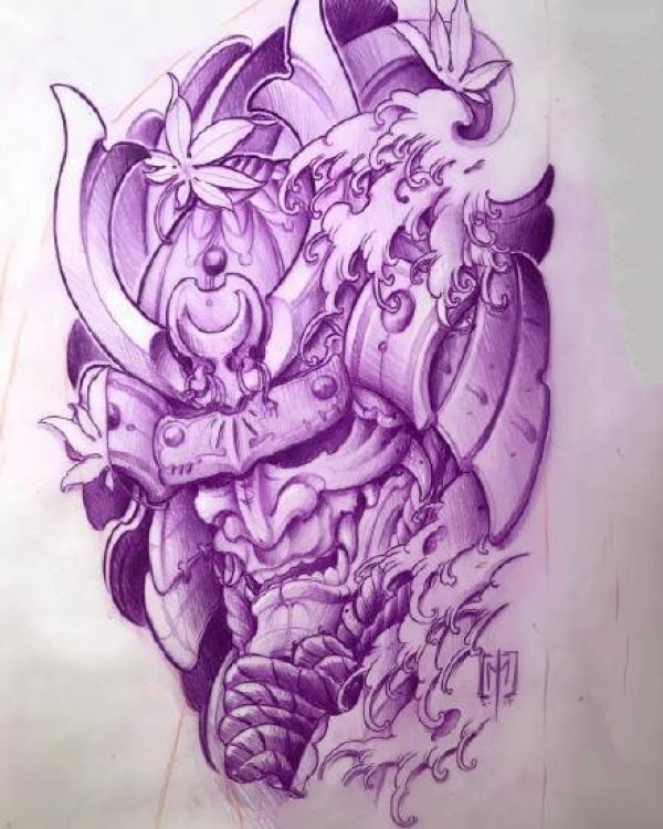 鬼武士般若等紫色的传统纹身手稿图案8张