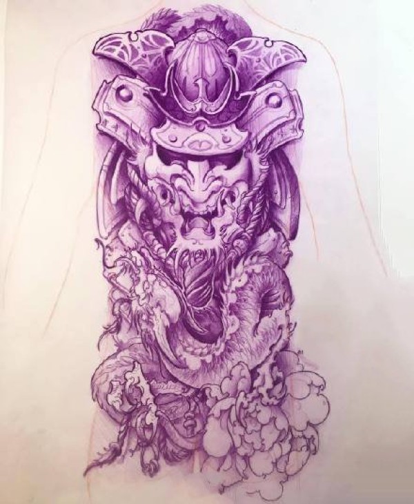 鬼武士般若等紫色的传统纹身手稿图案8张