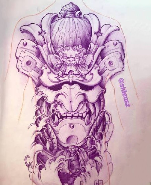 鬼武士般若等紫色的传统纹身手稿图案8张