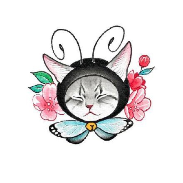 小猫和各种动物组成的可爱创意猫纹身手稿图案