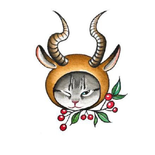 小猫和各种动物组成的可爱创意猫纹身手稿图案