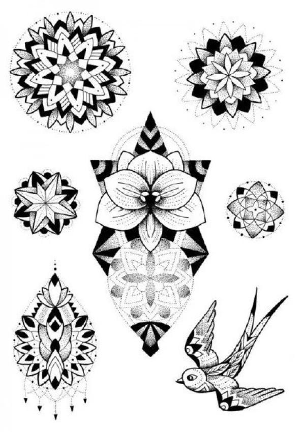 点刺梵花手稿_40张优秀的梵花点刺纹身手稿图案欣赏