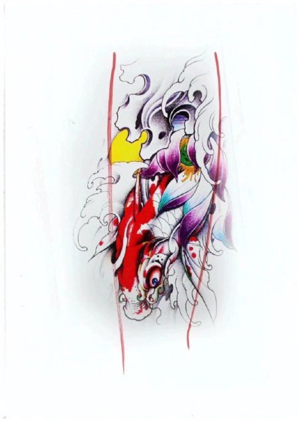 20张包小腿的富贵锦鲤鱼纹身手稿图案