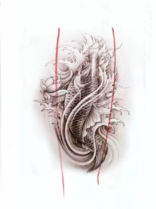 20张包小腿的富贵锦鲤鱼纹身手稿图案