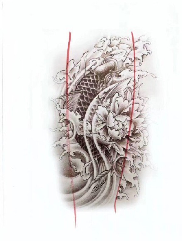 传统的30款鲤鱼纹身手稿图片赏析