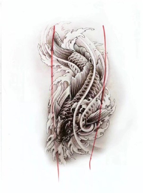 20张包小腿的富贵锦鲤鱼纹身手稿图案