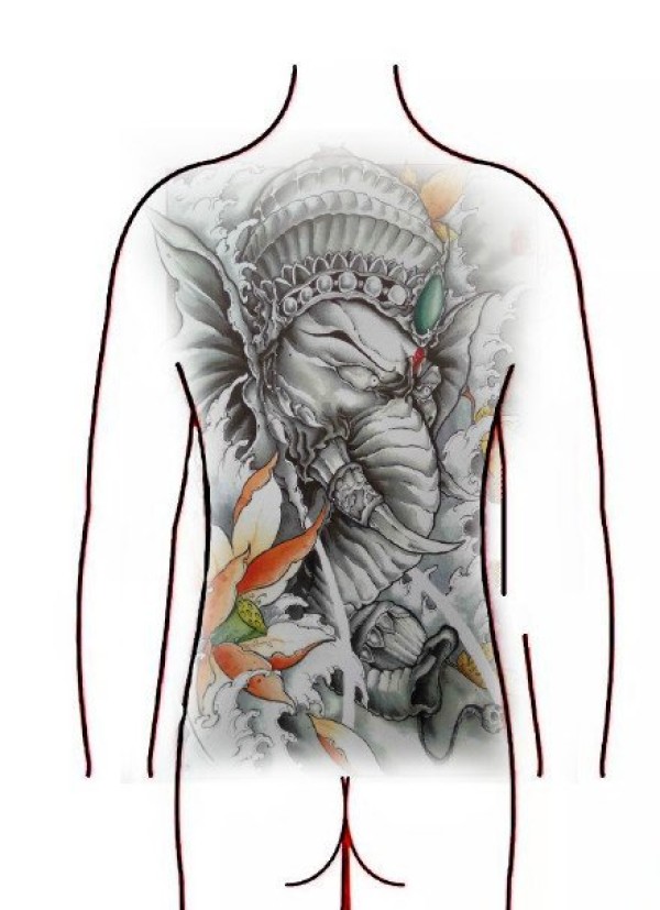 满背象神手稿:9张象神的满背纹身效果图手稿