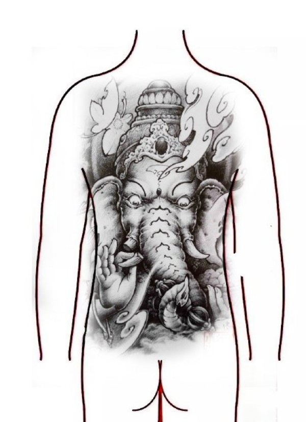 满背象神手稿:9张象神的满背纹身效果图手稿