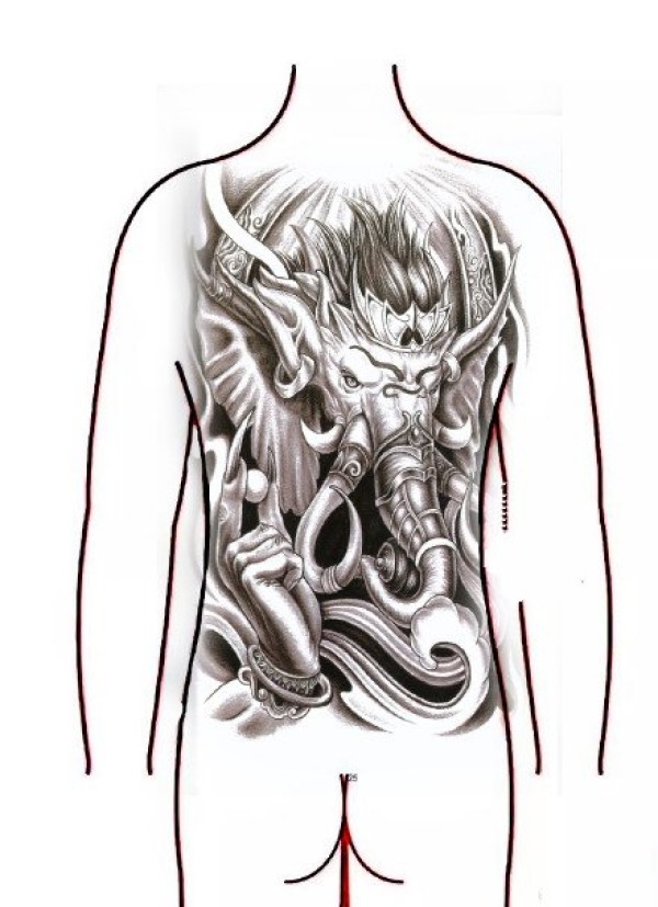 满背象神手稿:9张象神的满背纹身效果图手稿