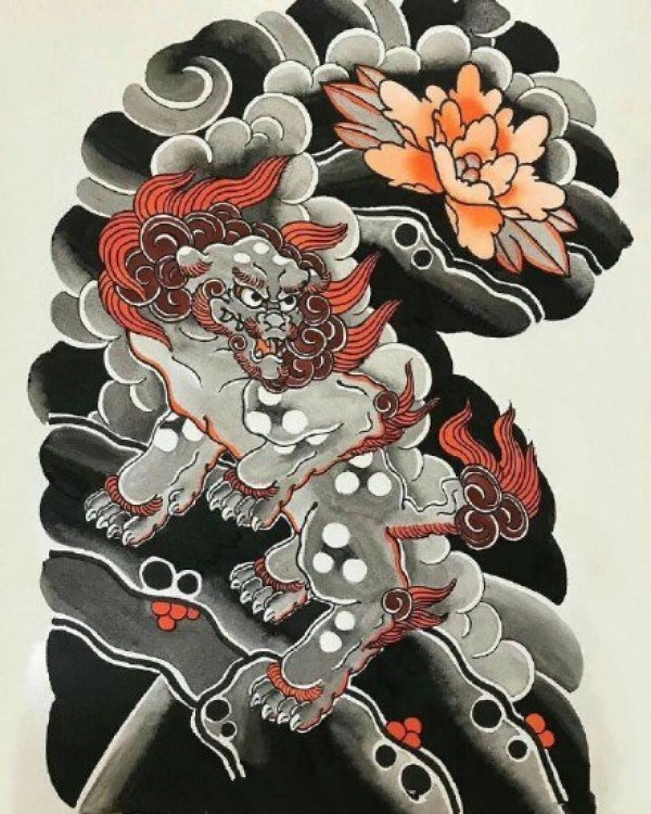 半甲唐狮手稿 传统的9款唐狮主题半甲纹身手稿图片