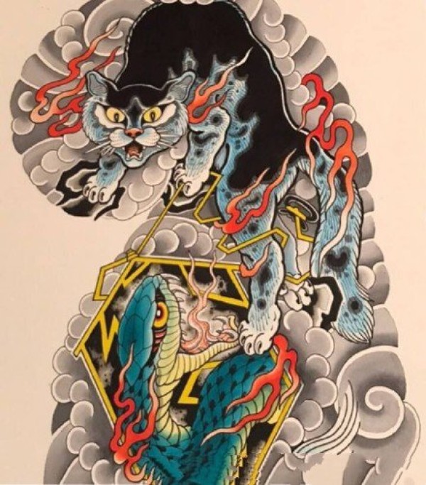 半甲唐狮手稿 传统的9款唐狮主题半甲纹身手稿图片
