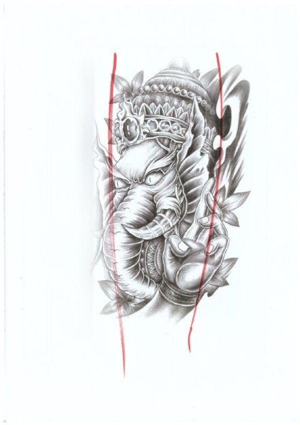 小腿象神手稿:9张包小腿的象神纹身手稿图案