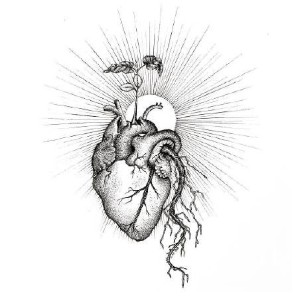 点刺心脏手稿:一组黑色的创意心脏纹身手稿图案