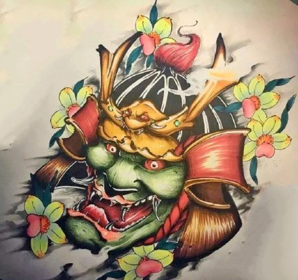 传统艺妓般若纹身图案手稿