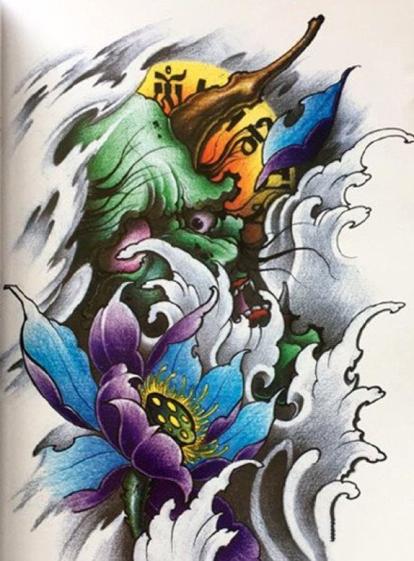 传统艺妓般若纹身图案手稿