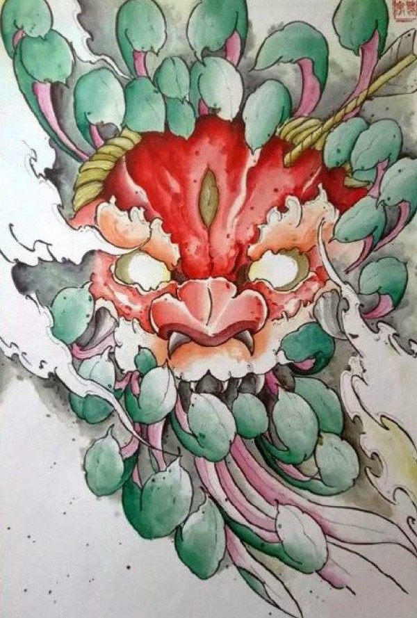 半甲唐狮手稿 传统的9款唐狮主题半甲纹身手稿图片