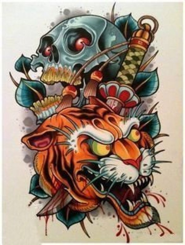 新传统手稿:27张漂亮的 彩色新传统纹身手稿图案