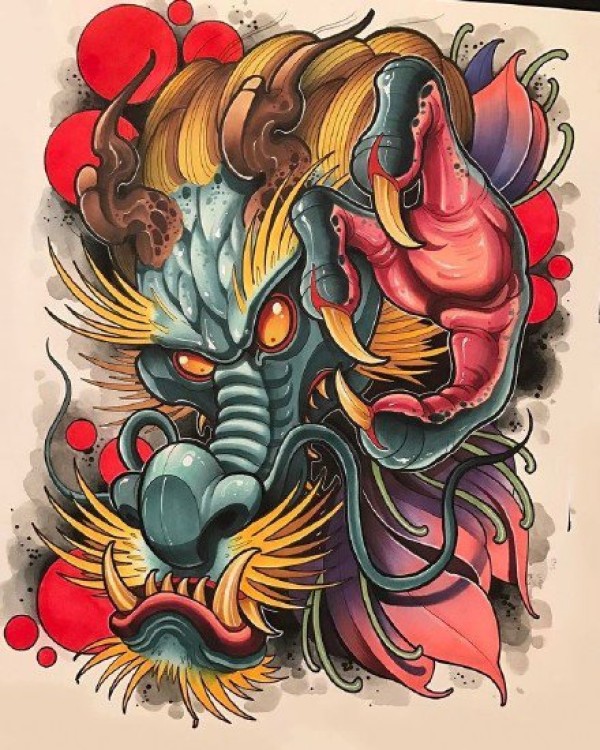 新传统手稿:27张漂亮的 彩色新传统纹身手稿图案