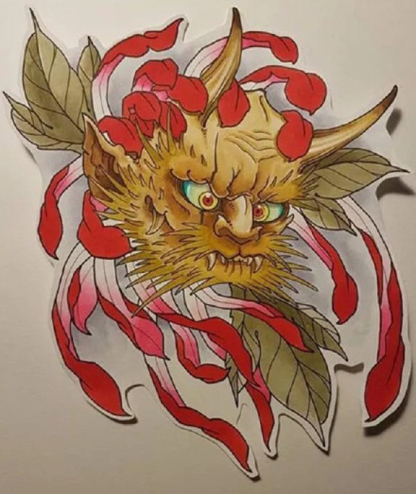 半甲唐狮手稿 传统的9款唐狮主题半甲纹身手稿图片