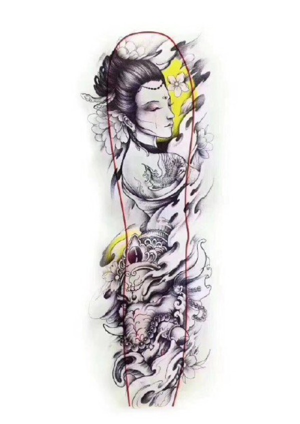 传统艺妓般若纹身图案手稿