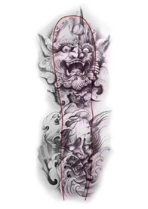 半甲唐狮手稿 传统的9款唐狮主题半甲纹身手稿图片