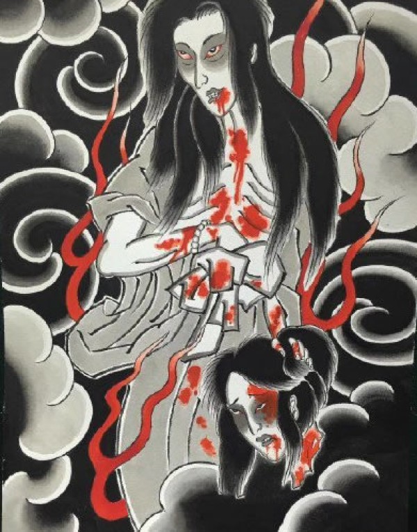 一组满背大气九龙拉棺纹身图案作品和手稿