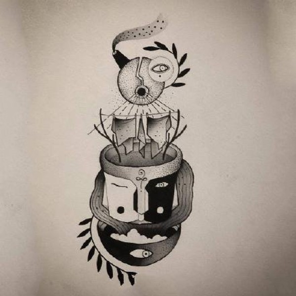 略微抽象感觉的一组黑色点刺纹身手稿欣赏