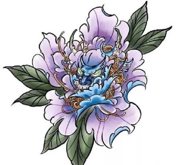 传统花卉:22张牡丹等传统花卉彩色纹身手稿
