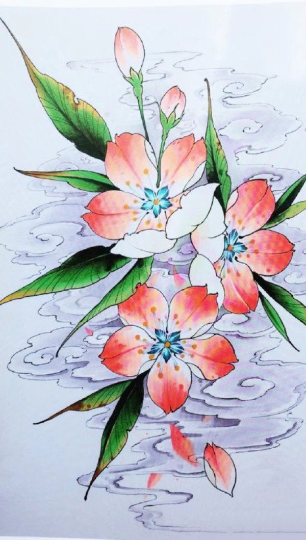 传统花卉:22张牡丹等传统花卉彩色纹身手稿