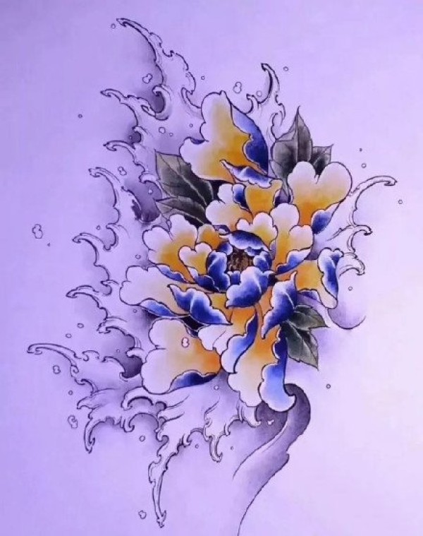传统花卉:22张牡丹等传统花卉彩色纹身手稿