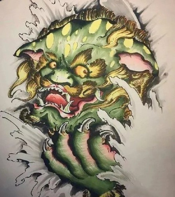 半甲唐狮手稿 传统的9款唐狮主题半甲纹身手稿图片