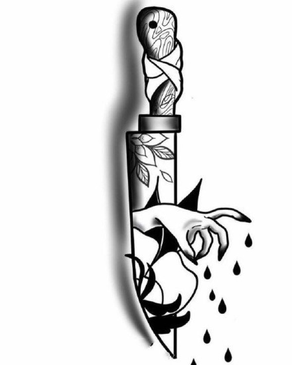匕首纹身素材:一组匕首小刀的纹身手稿图案