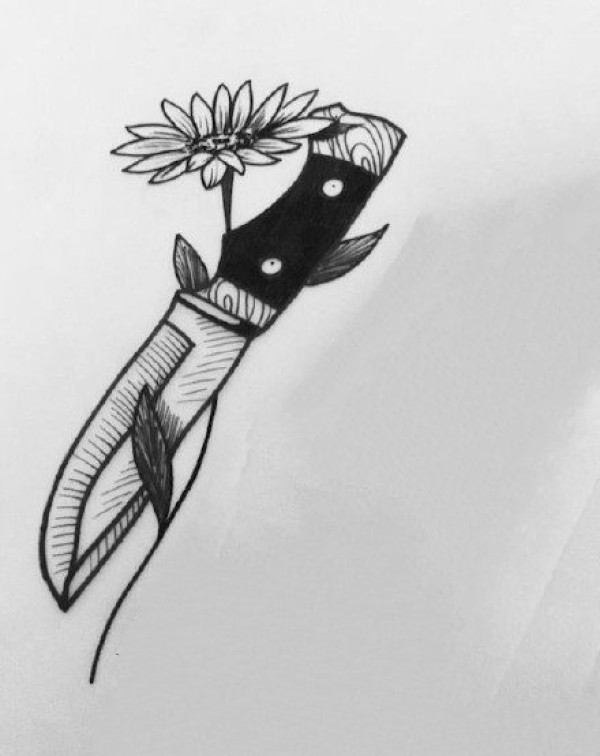 匕首纹身素材:一组匕首小刀的纹身手稿图案