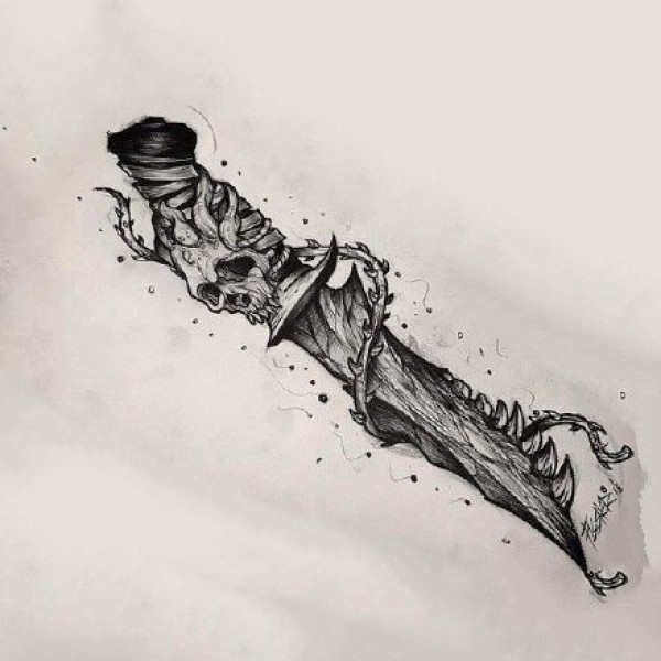 匕首纹身素材:一组匕首小刀的纹身手稿图案