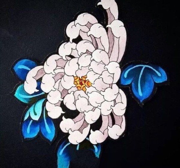 漂亮的一组彩色传统菊花纹身手稿图案