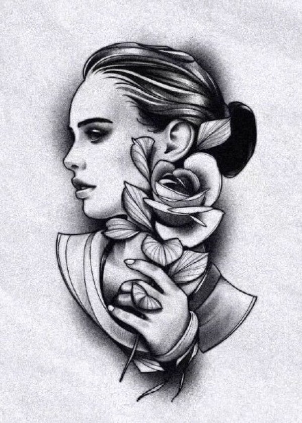 25张欧美女郎小黑灰纹身手稿图案