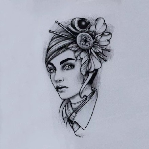 传统艺妓般若纹身图案手稿