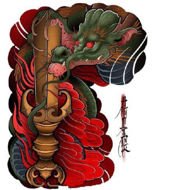 一组满背大气九龙拉棺纹身图案作品和手稿