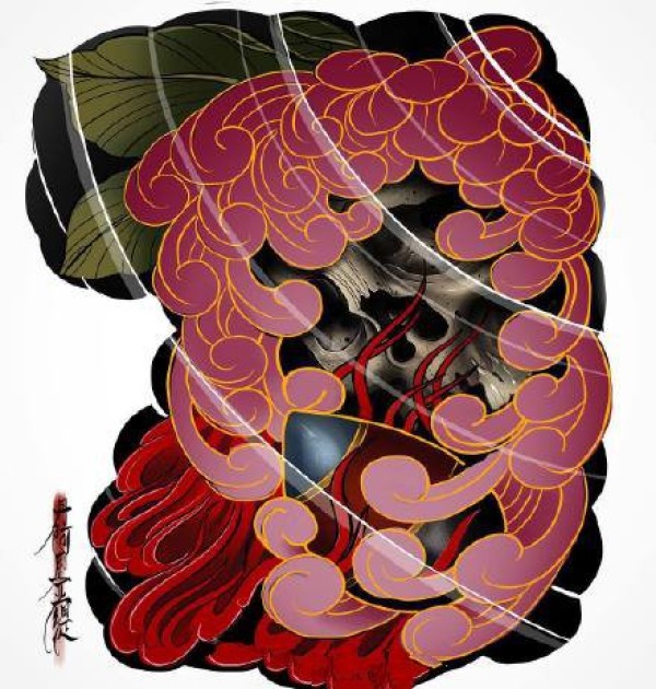 一组满背大气九龙拉棺纹身图案作品和手稿