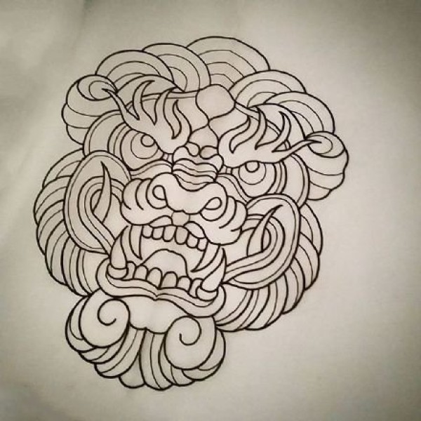 半甲唐狮手稿 传统的9款唐狮主题半甲纹身手稿图片