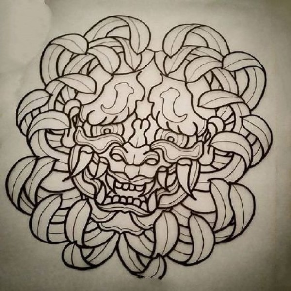 半甲唐狮手稿 传统的9款唐狮主题半甲纹身手稿图片