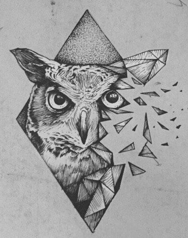 一组漂亮的猫头鹰纹身手稿图案